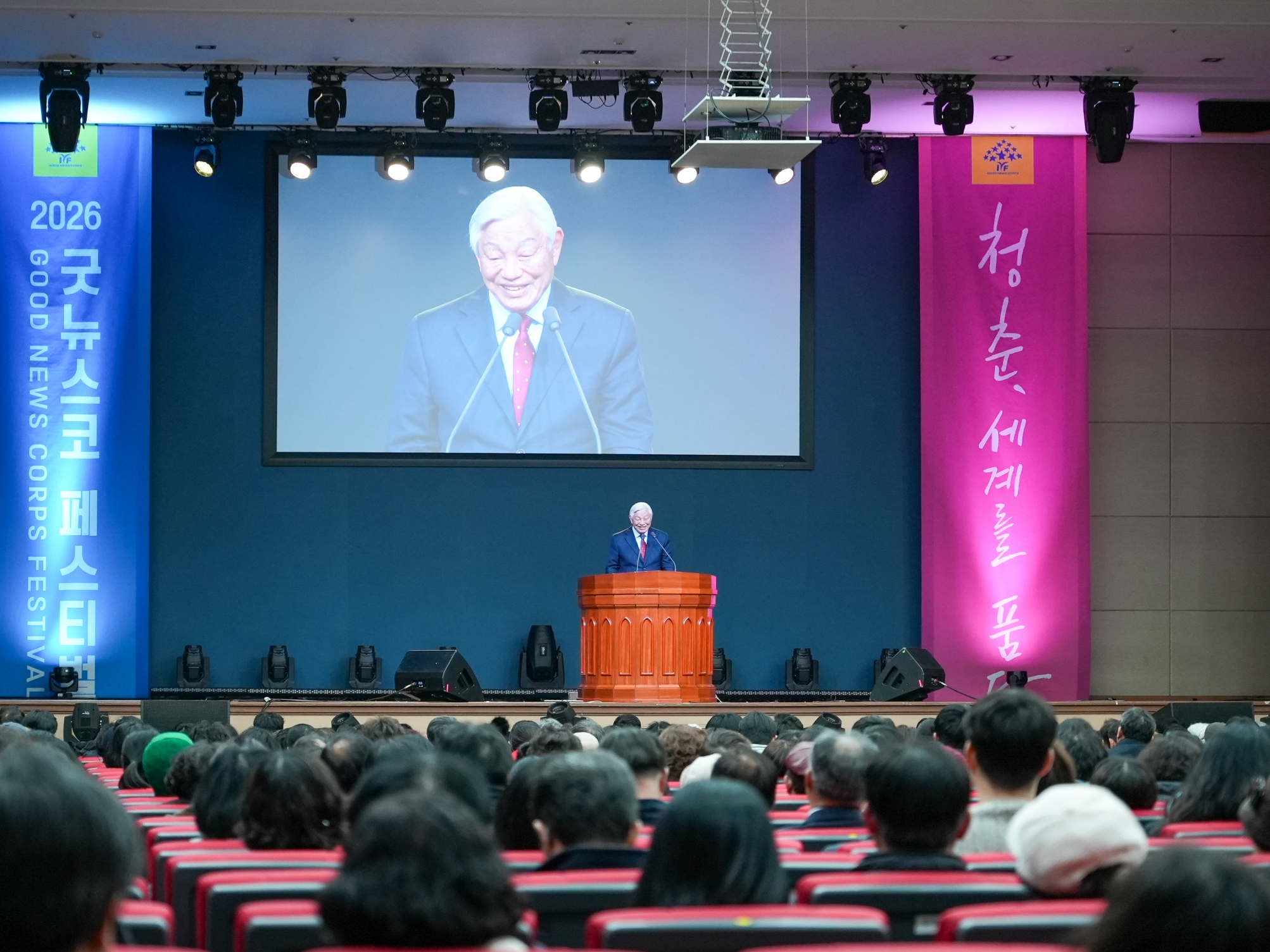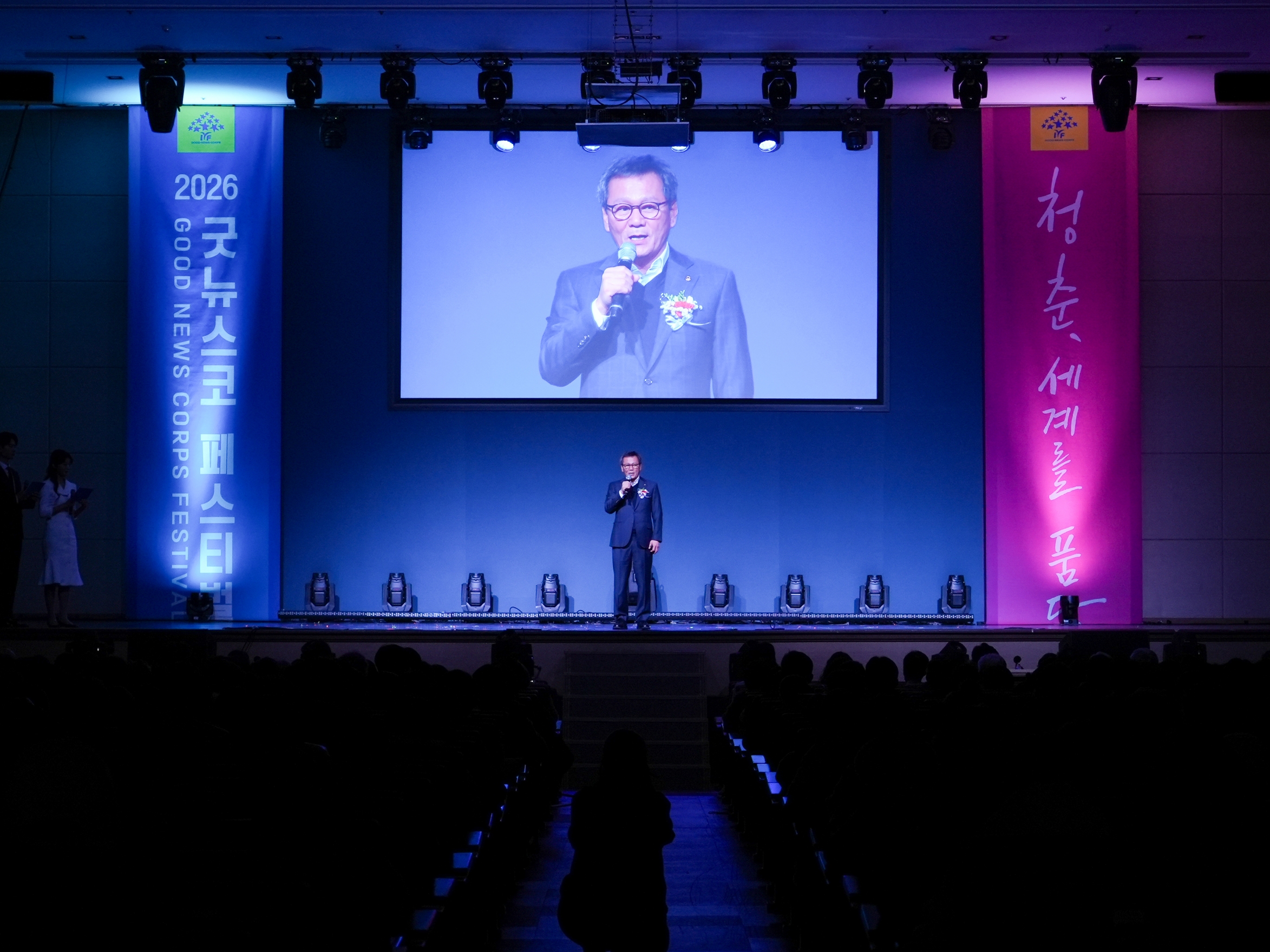 "지금 우리 사회는 불확실성과 빠른 변화 속에서 서로를 이해하고 연대하는 힘이 그 어느 때보다 절실한 시대를 살고 있습니다. 이런 시대적 흐름 속에 국제청소년연합이 청소년들에게는 도전의 기회를, 지역사회는 따뜻한 변화와 희망의 소식을 전하는 소중한 역할을 계속해 주시기를 진심으로 기대합니다. 2026년 굿뉴스코 페스티벌이 용기와 희망을 남기는 뜻깊은 축제가 되기를 기원합니다." / 최익순 강릉시의회 의장