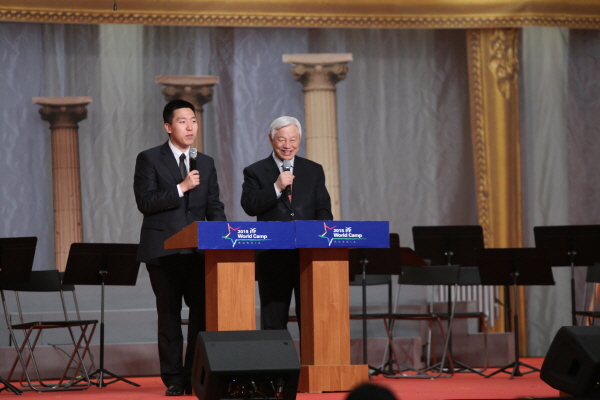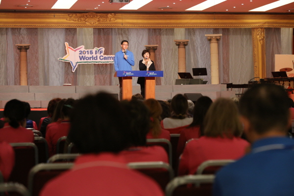 러시아 월드캠프 둘째 날, 아침부터 IYF 캠프 행사장은 학생들과 참가자들로 인해 활기찼다. 오늘은 아침부터 특별한 손님을 맞이했다. 다름 아니라 쉰 세 가지의 암을 극복한 최수현 선배단원이 어머니와 함께 한국에서 왔는데, 아침시간 최수현 단원의 어머니 오완수씨의 강연이 있었다.
